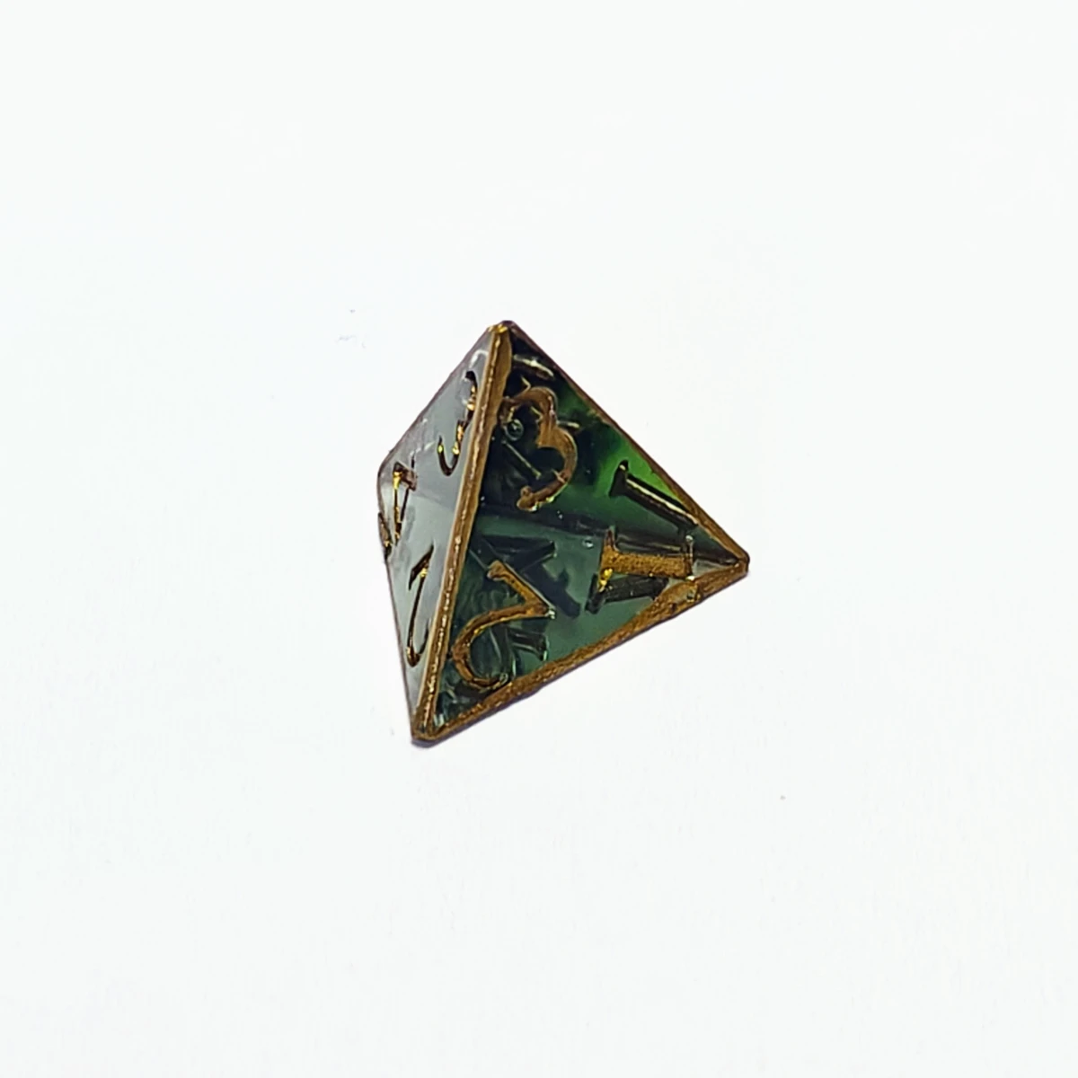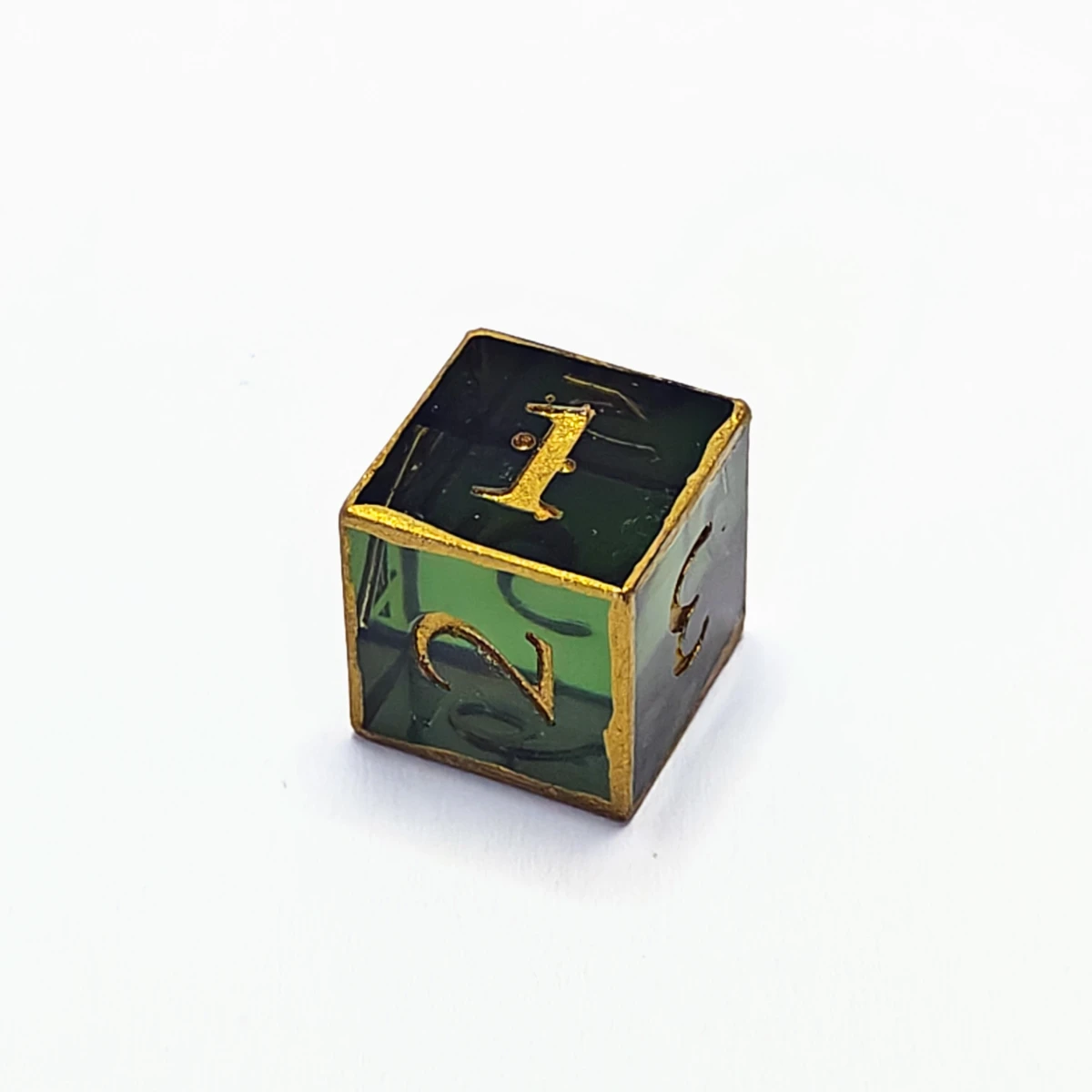 The colors of the high elves, found in a sylvan glade. Dark green translucent resin with metallic gold numbers and edges. Corners and edges are smoothed. They contain small to large imperfections and/or bubbles (indicated in individual images).