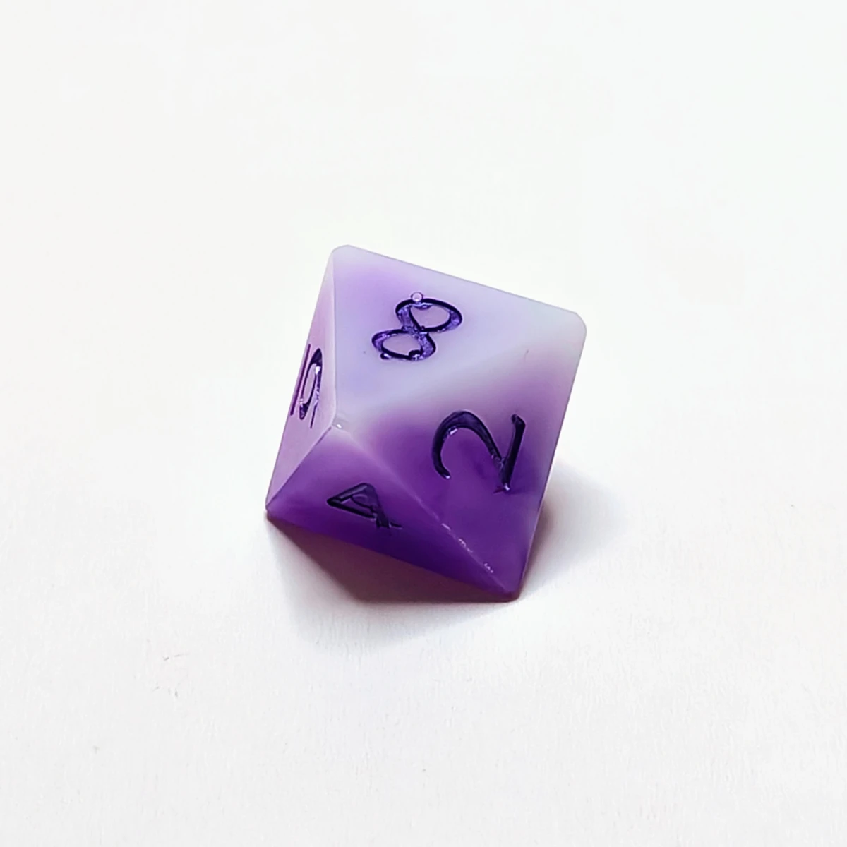 - White and purple semi-opaque resin with metallic amethyst numbers
