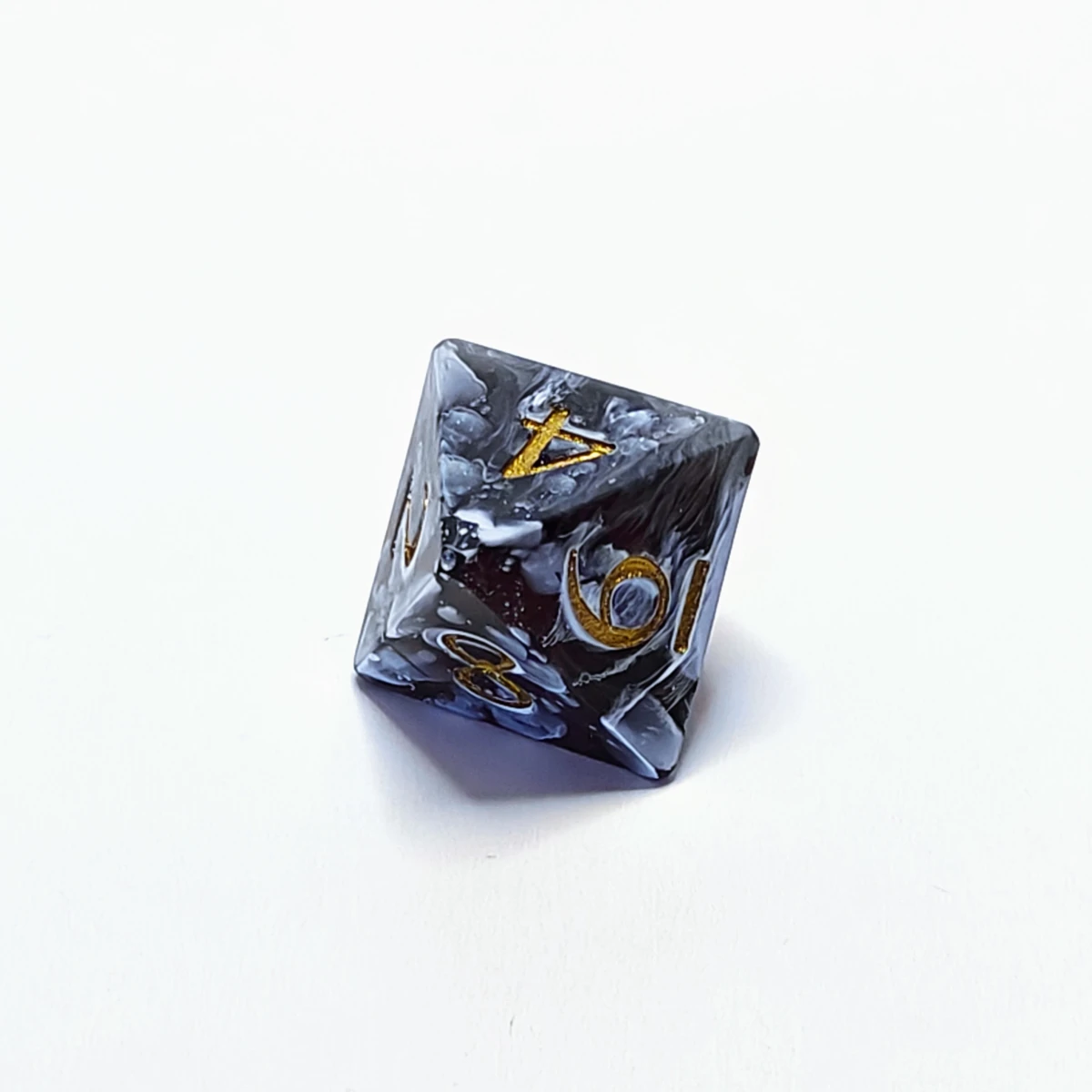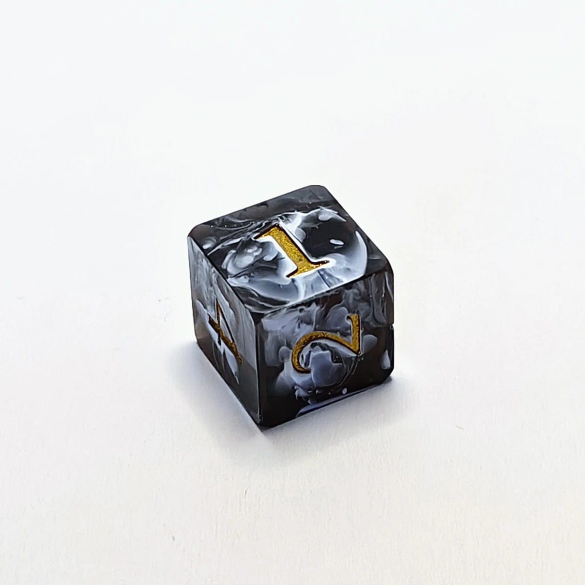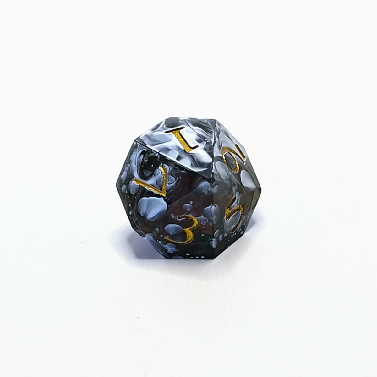 - White swirled on black resin, with metallic gold numbers